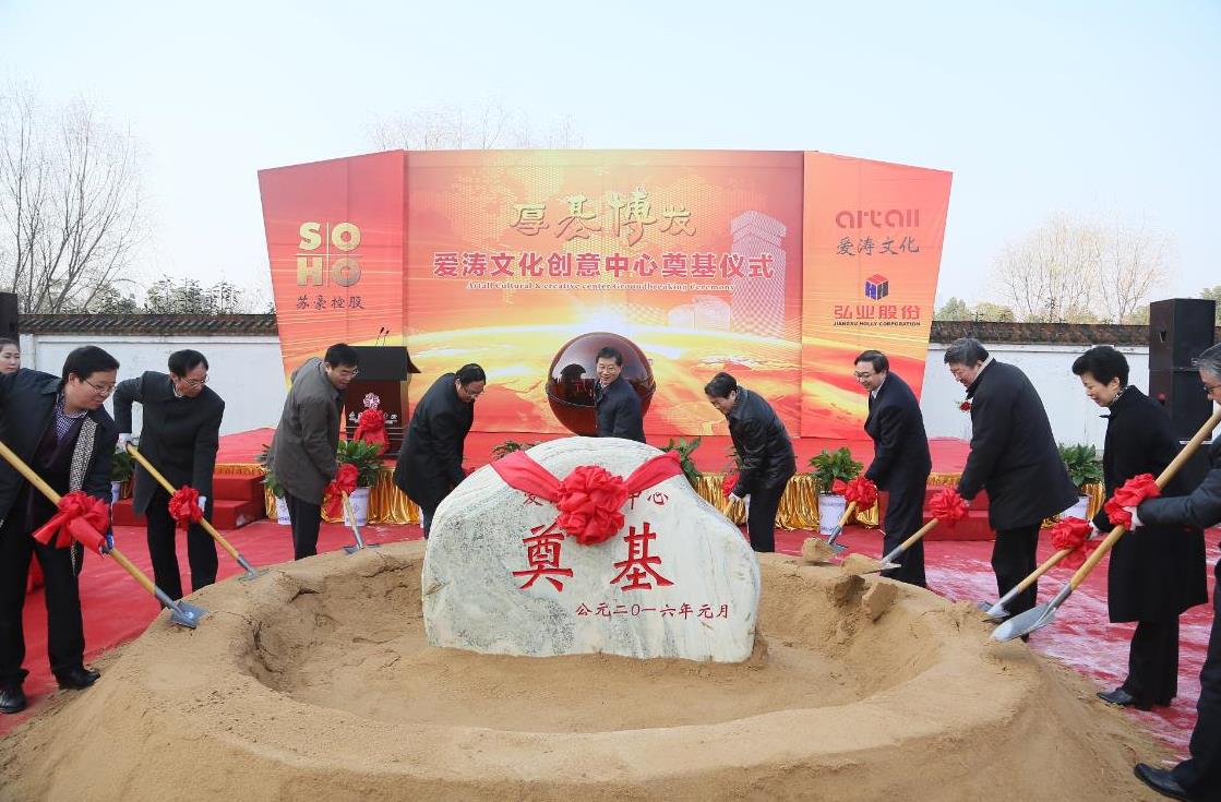省文化廳分管領(lǐng)導(dǎo)對(duì)愛濤文化創(chuàng)意中心的奠基表示熱烈的祝賀,表示,近年來,蘇豪控股集團(tuán)不斷深化內(nèi)部改革,推進(jìn)轉(zhuǎn)型升級(jí),形成了投資、貿(mào)易、文化、地產(chǎn)四大主業(yè),綜合實(shí)力不斷增強(qiáng)。作為剛剛孕育產(chǎn)生的一個(gè)嶄新平臺(tái),愛濤文化創(chuàng)意產(chǎn)業(yè)園致力于建成江蘇文化藝術(shù)的推廣基地、江蘇傳統(tǒng)工藝的展示基地、文化創(chuàng)意孵化的培育基地、文化產(chǎn)權(quán)交易及藝術(shù)金融創(chuàng)新的示范基地、國(guó)內(nèi)外文化藝術(shù)活動(dòng)的交流基地和“文化+”產(chǎn)業(yè)模式融合發(fā)展的實(shí)踐基地,將成為推動(dòng)江蘇文化產(chǎn)業(yè)進(jìn)一步發(fā)展的又一重要引擎。