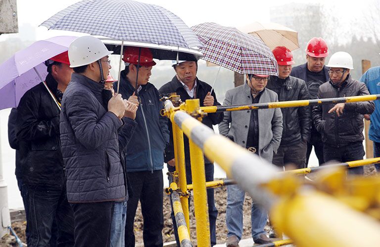 會后,在項目部、總包和監(jiān)理單位陪同下,張發(fā)松一行進入工地現(xiàn)場進行視察。